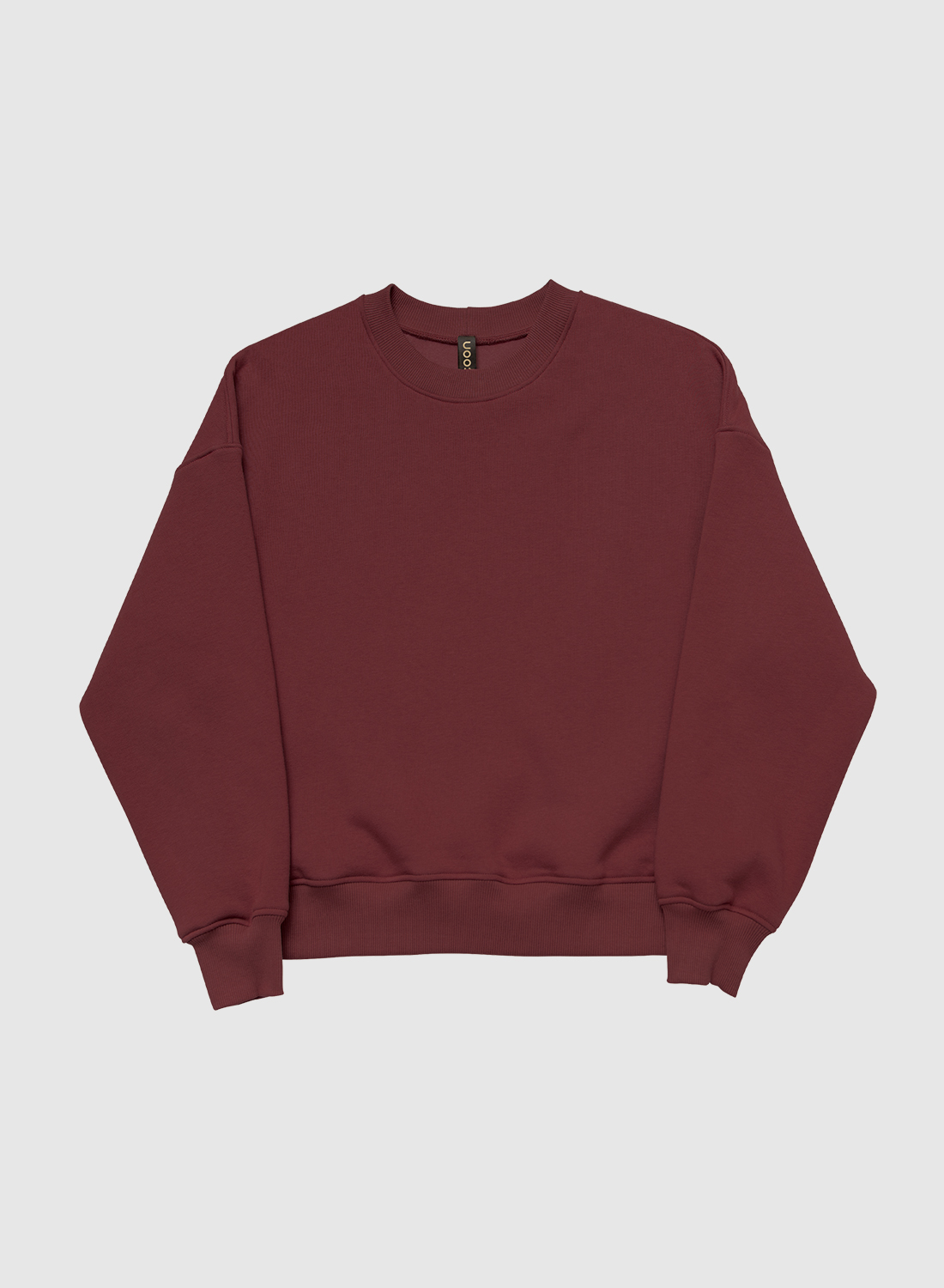 Bluza dresowa typu BASIC dostępna w dwóch krojach (klasyczny i oversize) w kolorze bordowym. Uszyta z super miękkiej i przyjemnej w dotyku wysokogatunkowej dzianiny bawełnianej, certyfikowanej znakiem OEKO-TEX, co oznacza, że jest bezpieczna dla Twojej skóry i środowiska. Nie mechaci się, nie wyciąga się, nie wypycha np. na łokciach, a kolor nie blaknie. Bardzo wygodna. Rękawy, dekolt i dół wykończone bawełnianym ściągaczem.