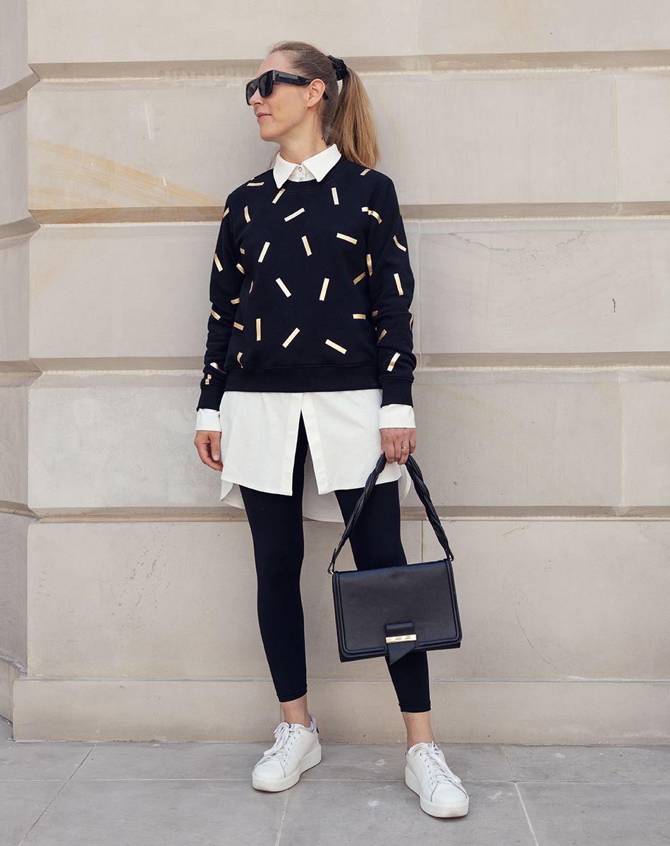 Bluza ze "złotą posypką" w stylu art deco / glamour. uszyta z super miękkiej i przyjemnej w dotyku wysokogatunkowej dzianiny bawełnianej w kolorze śmietankowej bieli.Dzianina certyfikowana znakiem OEKO-TEX, bezpieczna dla Twojej skóry i zdrowia. Bardzo ciepła i wygodna. "Złota posypka" wykonana w technice sublimacji, z folii flex wygrzewanejna gorąco bezpośrednio na dzianinie. Nie jest to zwykły nadruk, ale ręcznie wykonywane zdobienia dające bardzo trwały efekt, który nigdy nie wyblaknie ;)Print czyni ją zupełnie wyjątkową i oryginalną sprawiając jednocześnie, że nie jest to zwykła bluza dresowa. Dzięki temu można ją nosić do eleganckich spodni, spódnic, szpilektworząc tym samym niebanalne, nowoczesne stylizacje na co dzień i do pracy. Dodatkowo wysoka jakość dzianiny sprawia, że bluza się nie mechaci się, nie wyciąga się, nie wypychanp. na łokciach, a sam kolor nie blaknie. Dekolt bluzy, dół i rękawy wykończone bawełnianym ściągaczem. Dostępna w opcji drapanej (z meszkiem) i z pętelką od spodu.Na zdjęciach Ula (167cm wzrostu) ma na sobie rozmiar S w kroju oversize.